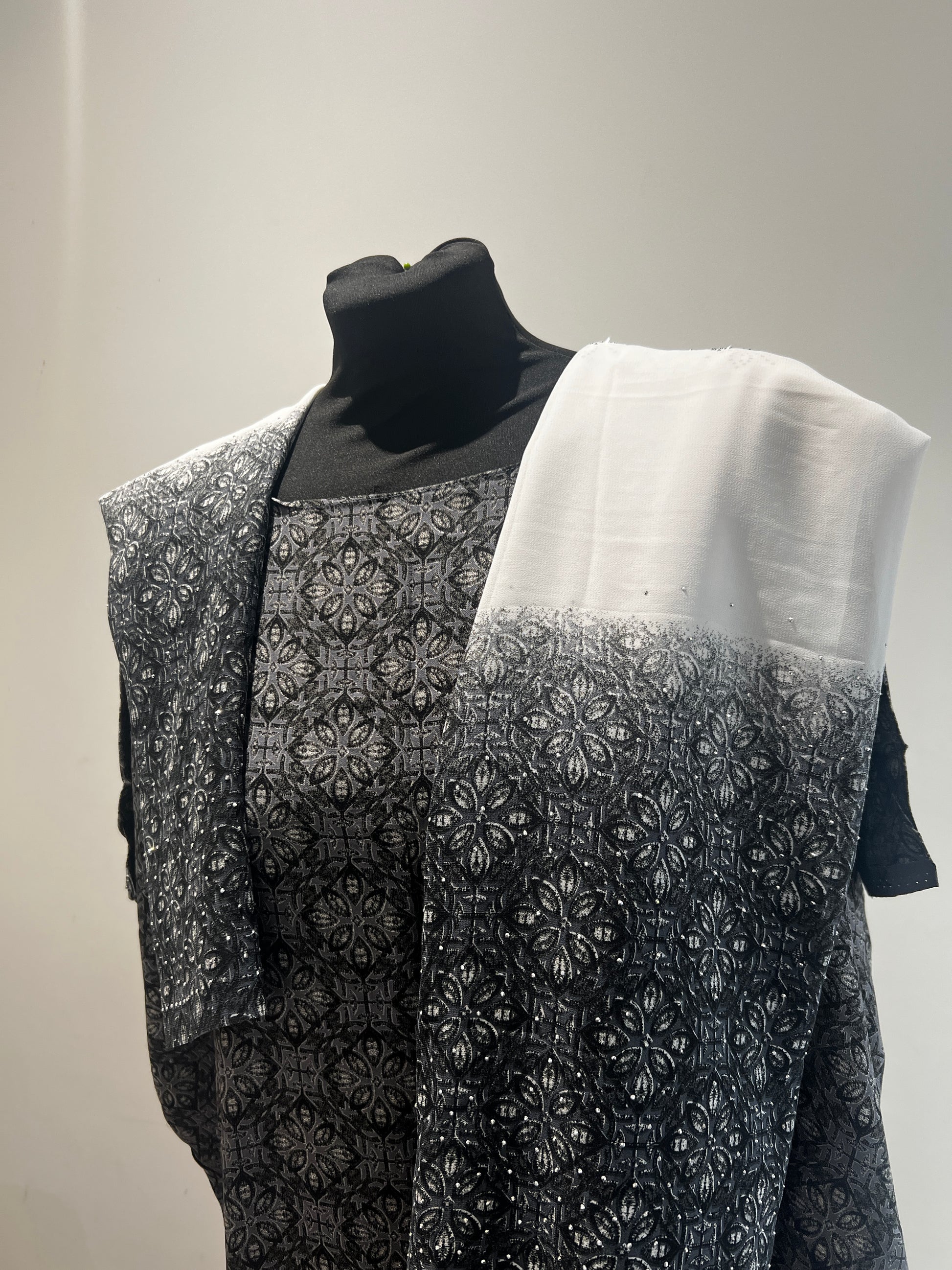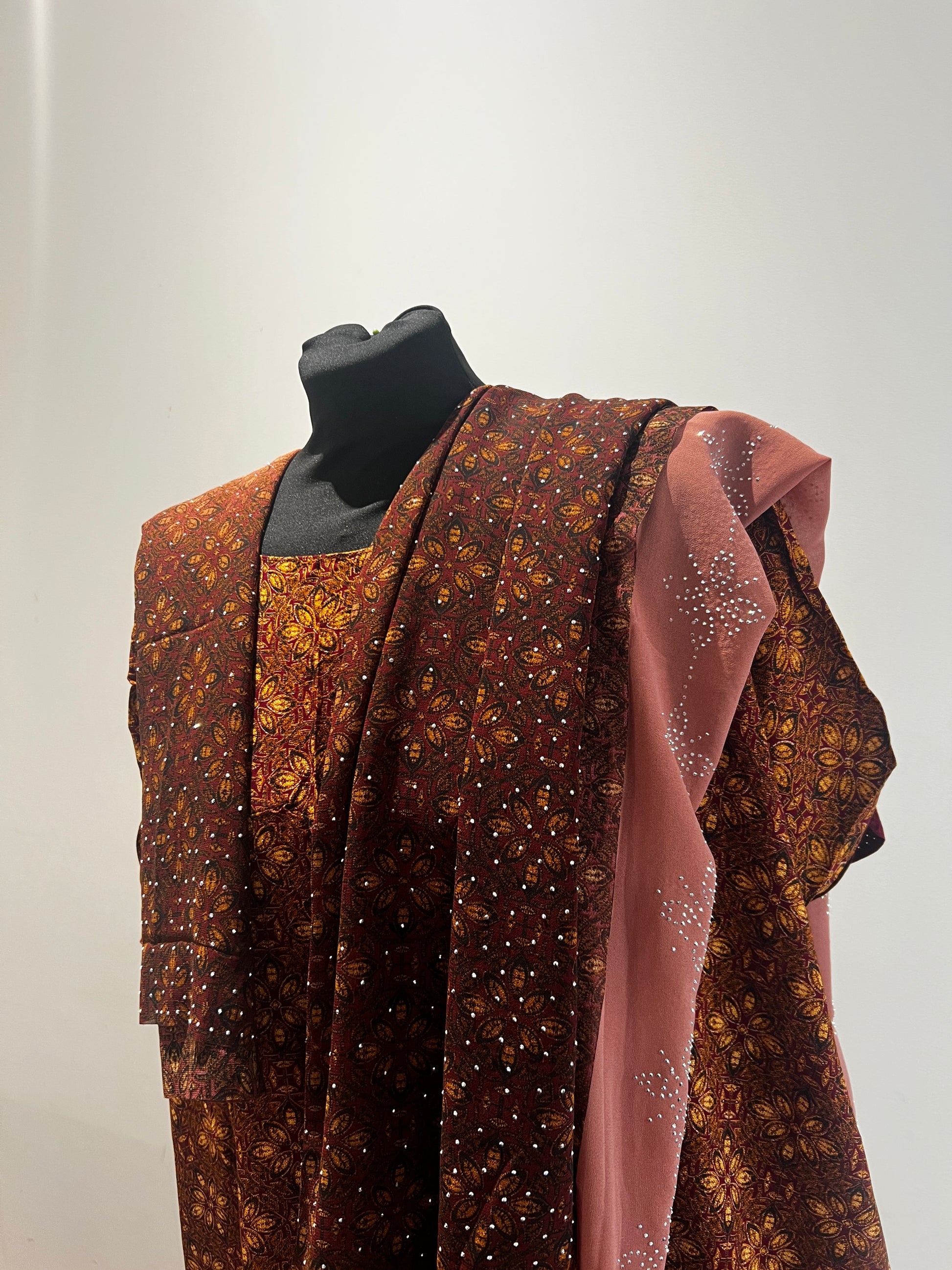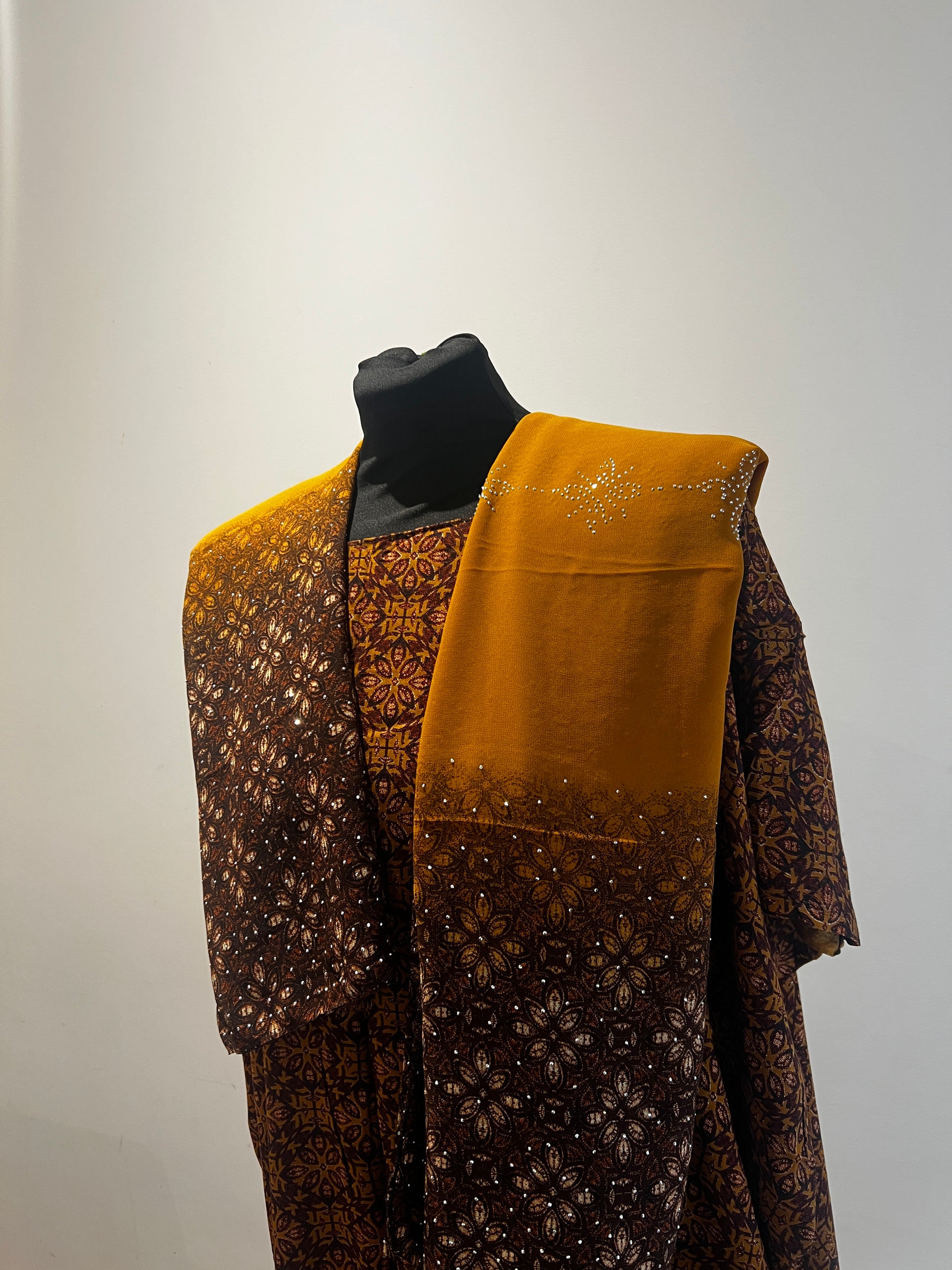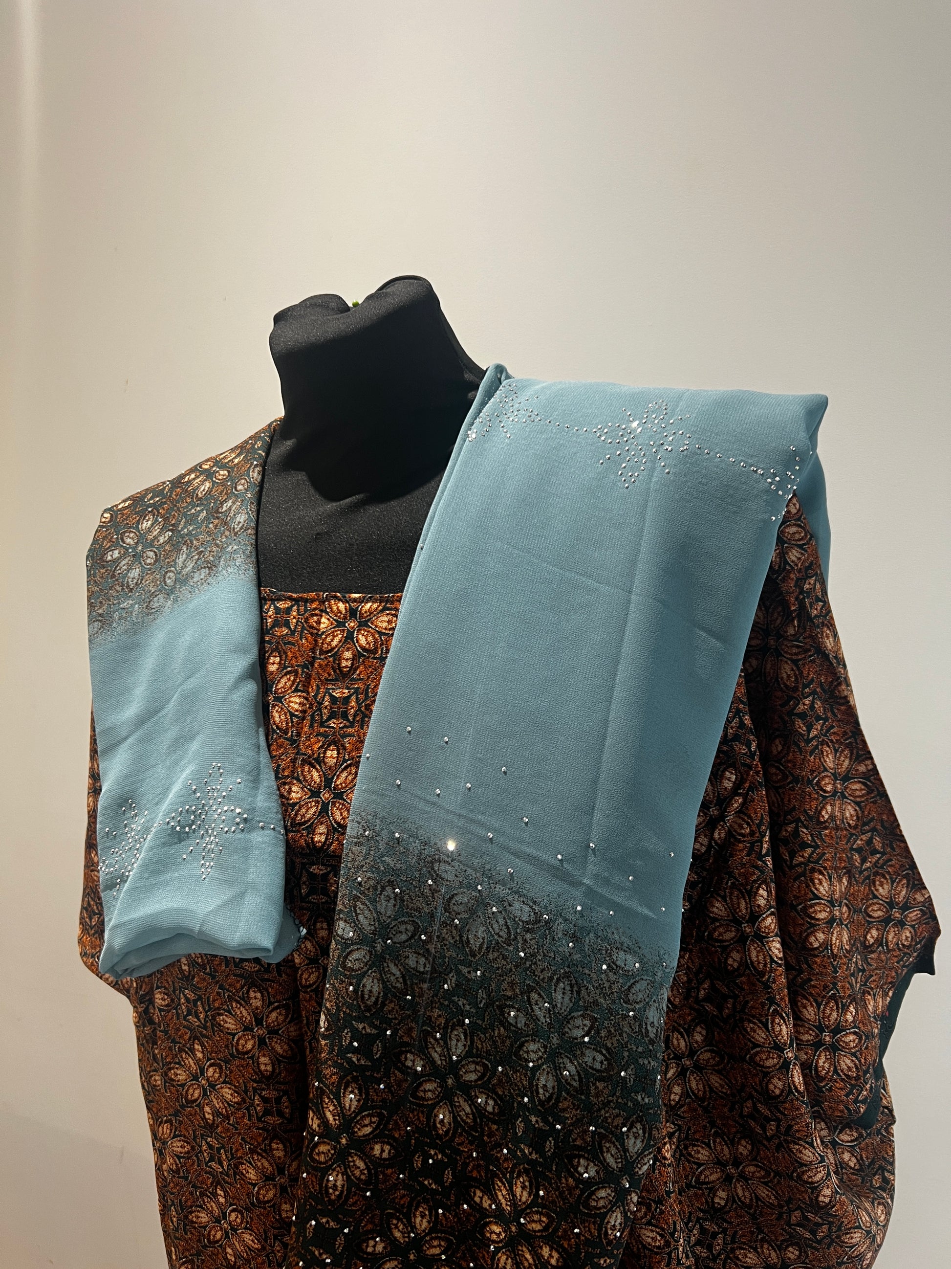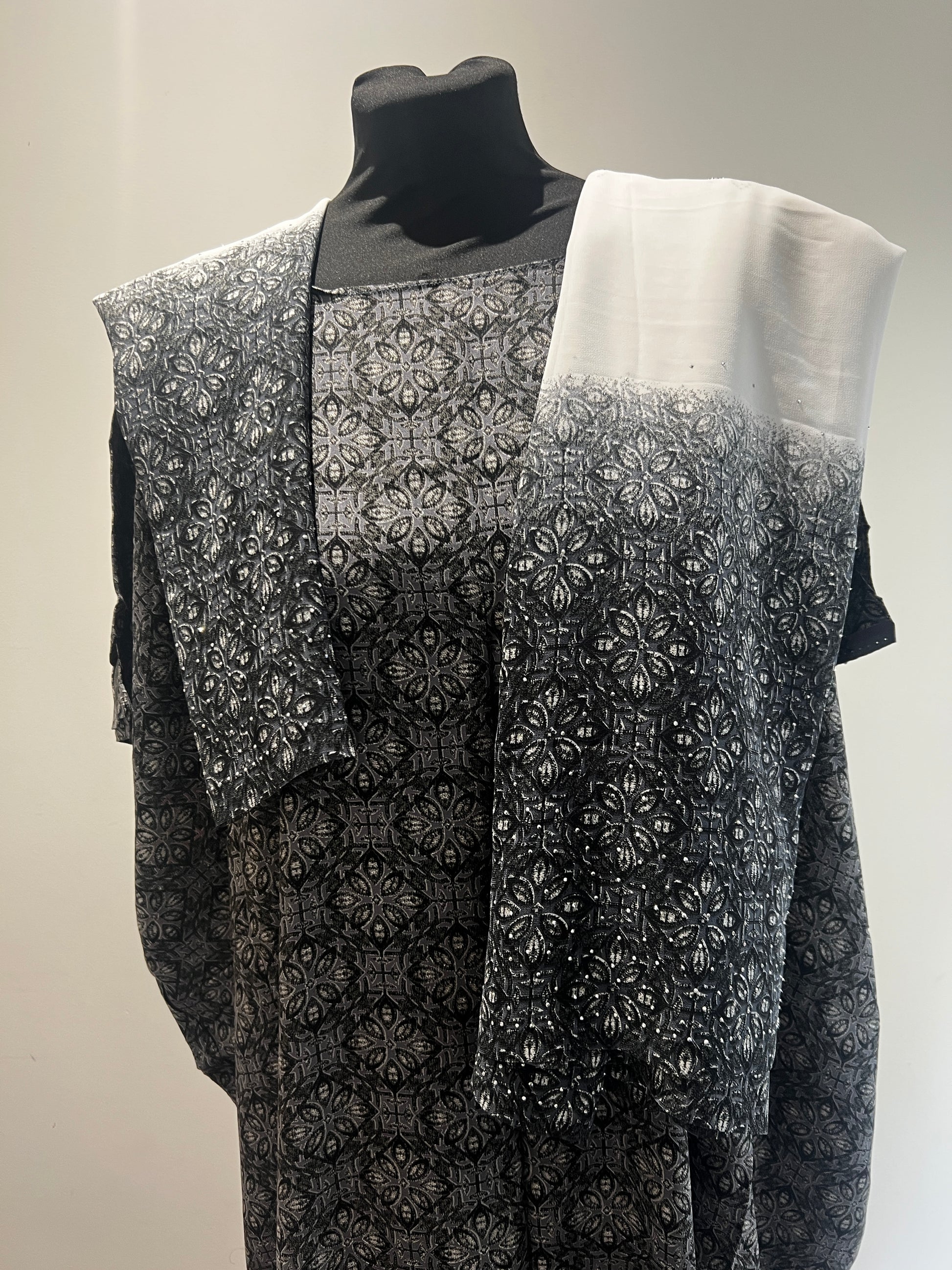 This set includes a baati, large scarf and small head scarf that will add a touch of elegance and sparkle to your look.