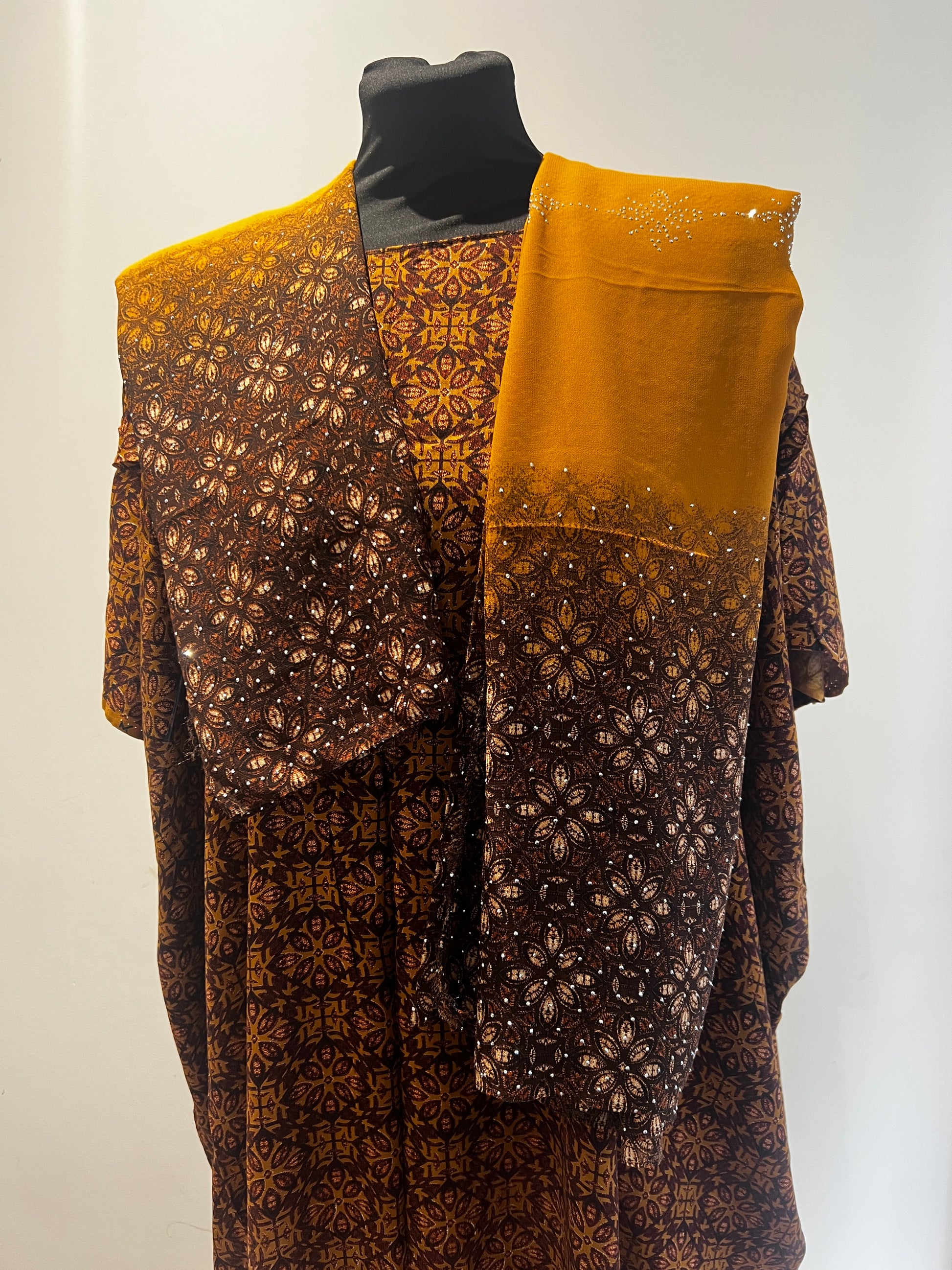 This set includes a baati, large scarf and small head scarf that will add a touch of elegance and sparkle to your look.
